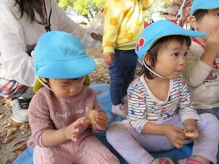 公園で拾った葉っぱで遊ぶのが、最近のみんなのお気に入り。