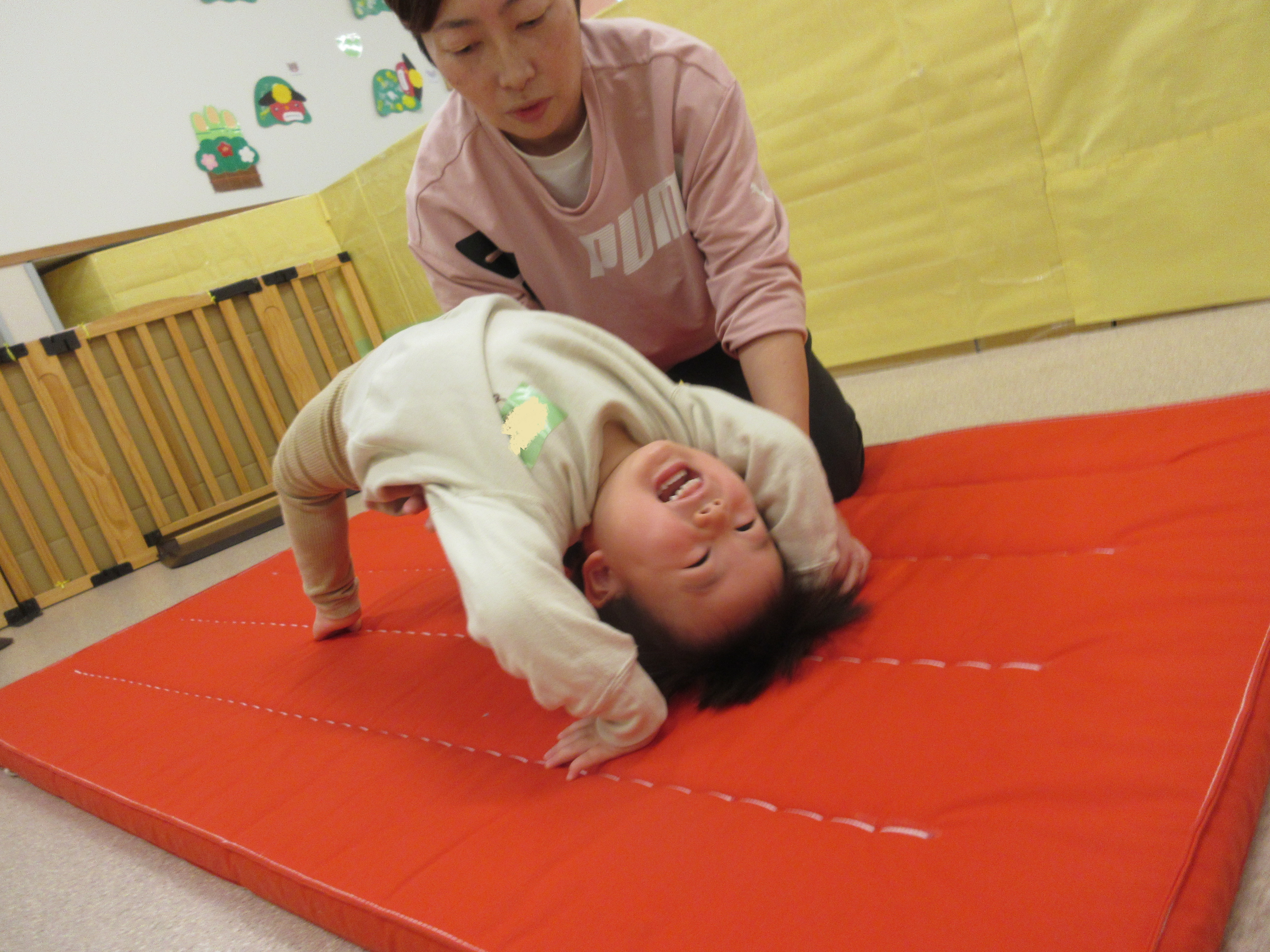 「たのしそう」「しゃぼんだまだー!」と次々とお友だちがやってきて、みんなで追いかけて楽しみました。(少し見えにくいのですが、よーく見るとたくさんのしゃぼん玉が写ってます)